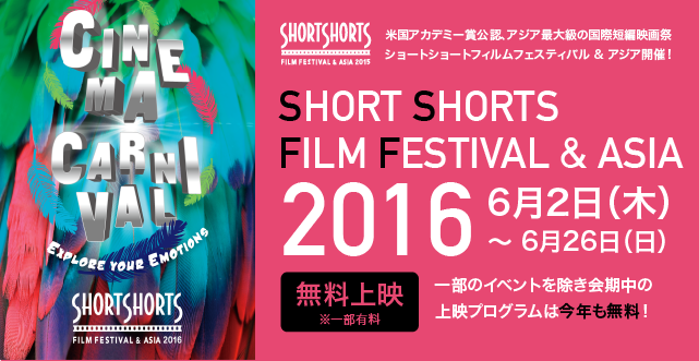 ショートショート フィルムフェスティバル & アジア 2016終了 6月2日~26日まで続いた映画祭が終了しました。 ご来場いただきましたたくさんの皆さま、映画祭開催にあたり多大な協力をいただいた関係各所の皆様本 …