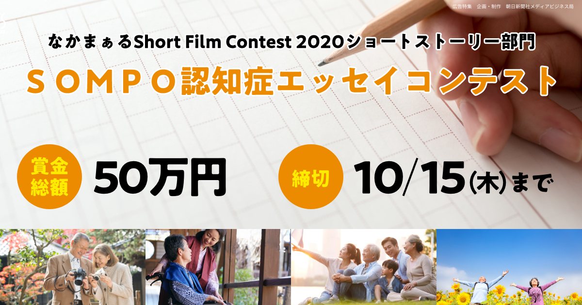 認知症フレンドリーな取り組みが社会に広がることを願い、今年も「なかまぁるShort Film Contest 2020」を開催しています。 今回、ショートストーリー部門「SOMPO認知症エッセイコンテスト」が新設されまし …
